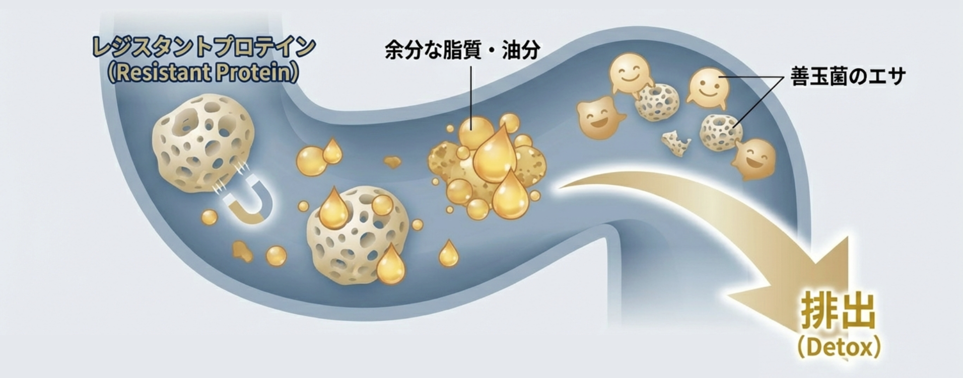 腸内の脂を吸着して排出。